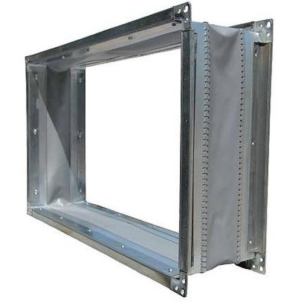 Корпус вставки изготовлен из оцинкованной стали, в середине закреплена тканевая лента, обеспечивающая герметичность канала. Конструкция вставки позволяет крепить её к фланцам вентиляторов с помощью болтов или реечного соединения.