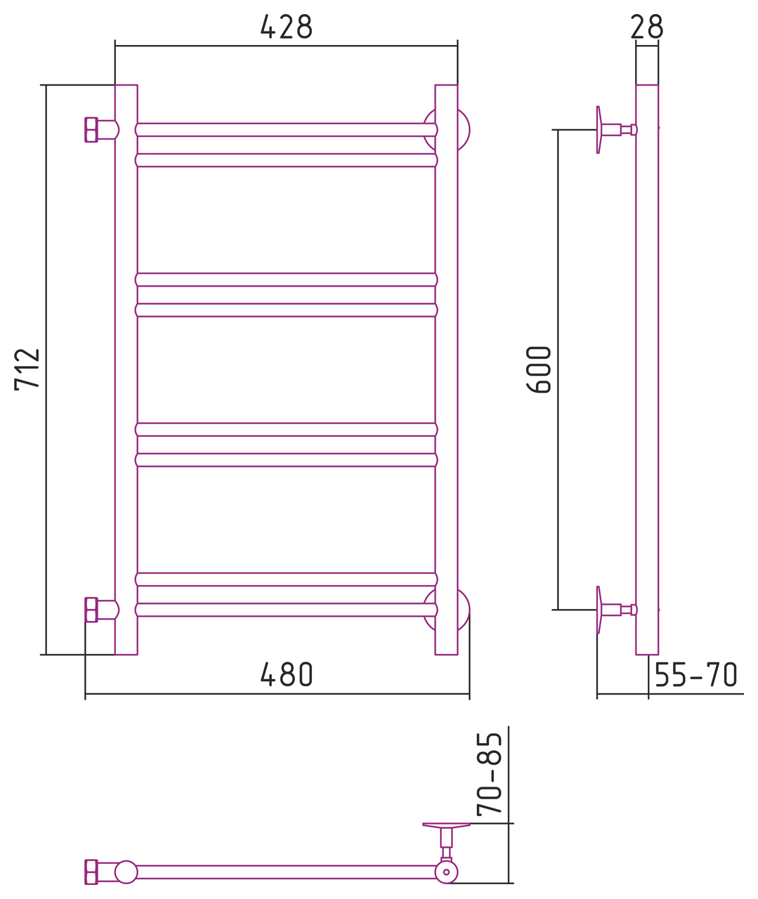Полотенцесушитель водяной Стилье Версия-Б1 600x400