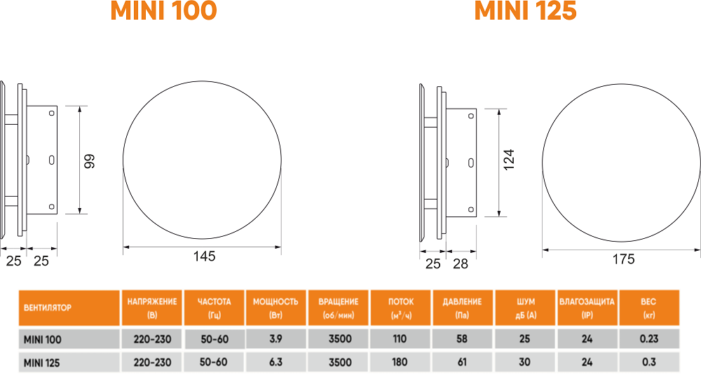 MINI – серия вытяжных вентиляторов на шариподшипниках с ультракоротким фланцем 25 мм! Выпускаются в диаметрах 100 и 125 мм.